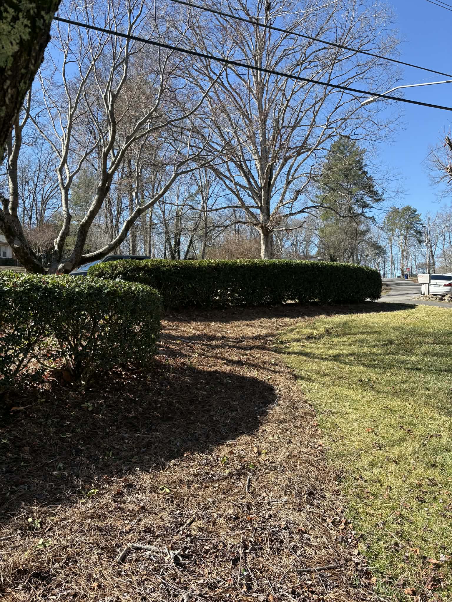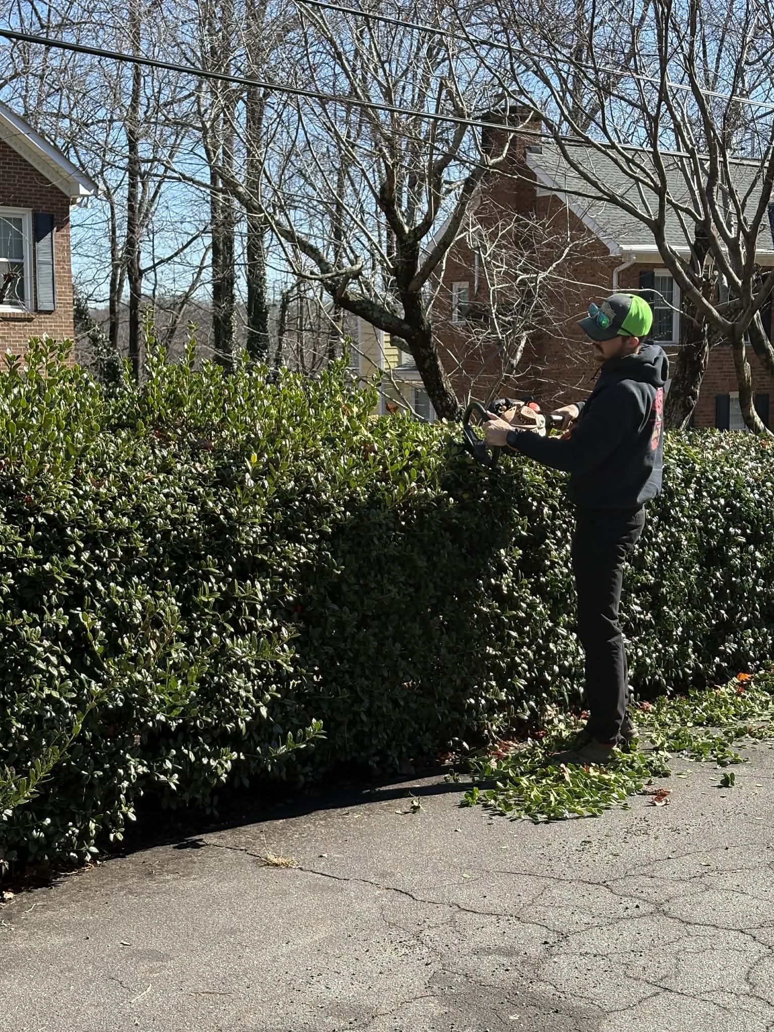 Our team completed detailed shrub pruning and landscape services for this property in Winston-Salem, NC. A row of mature holly shrubs was carefully pruned to restore proper shape, encourage healthy growth, and create a clean, uniform appearance along the landscape bed. In addition, the ivy growing along the brick wall was tightly and evenly trimmed to maintain a neat, controlled look while preventing overgrowth against the structure. Professional pruning and trimming like this not only improves the appearance of a landscape but also promotes long-term plant health and easier maintenance for homeowners in the Winston-Salem area.